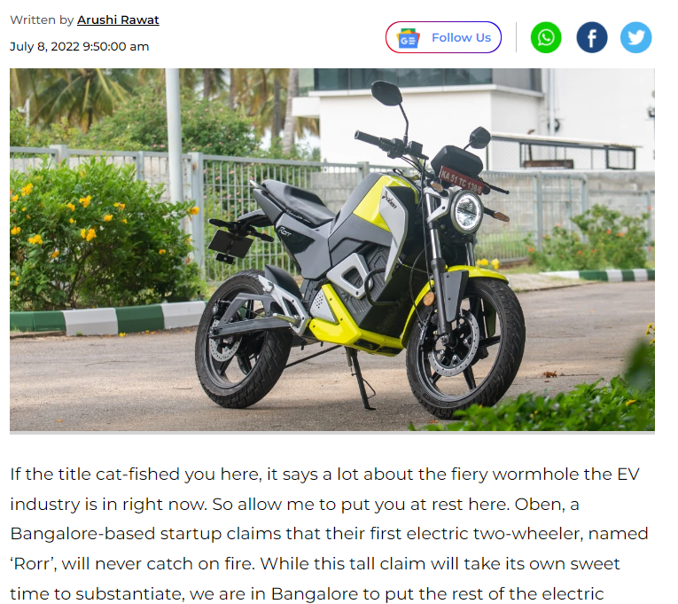Oben Rorr EV Review: Fast, frugal and promises to never catch on fire!